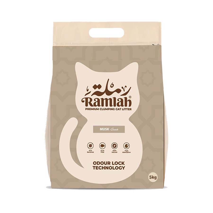 Experience luxury with Ramlah Musk Scented Cat Litter — fast clumping, long-lasting odor control, and a soft, clean musk fragrance.